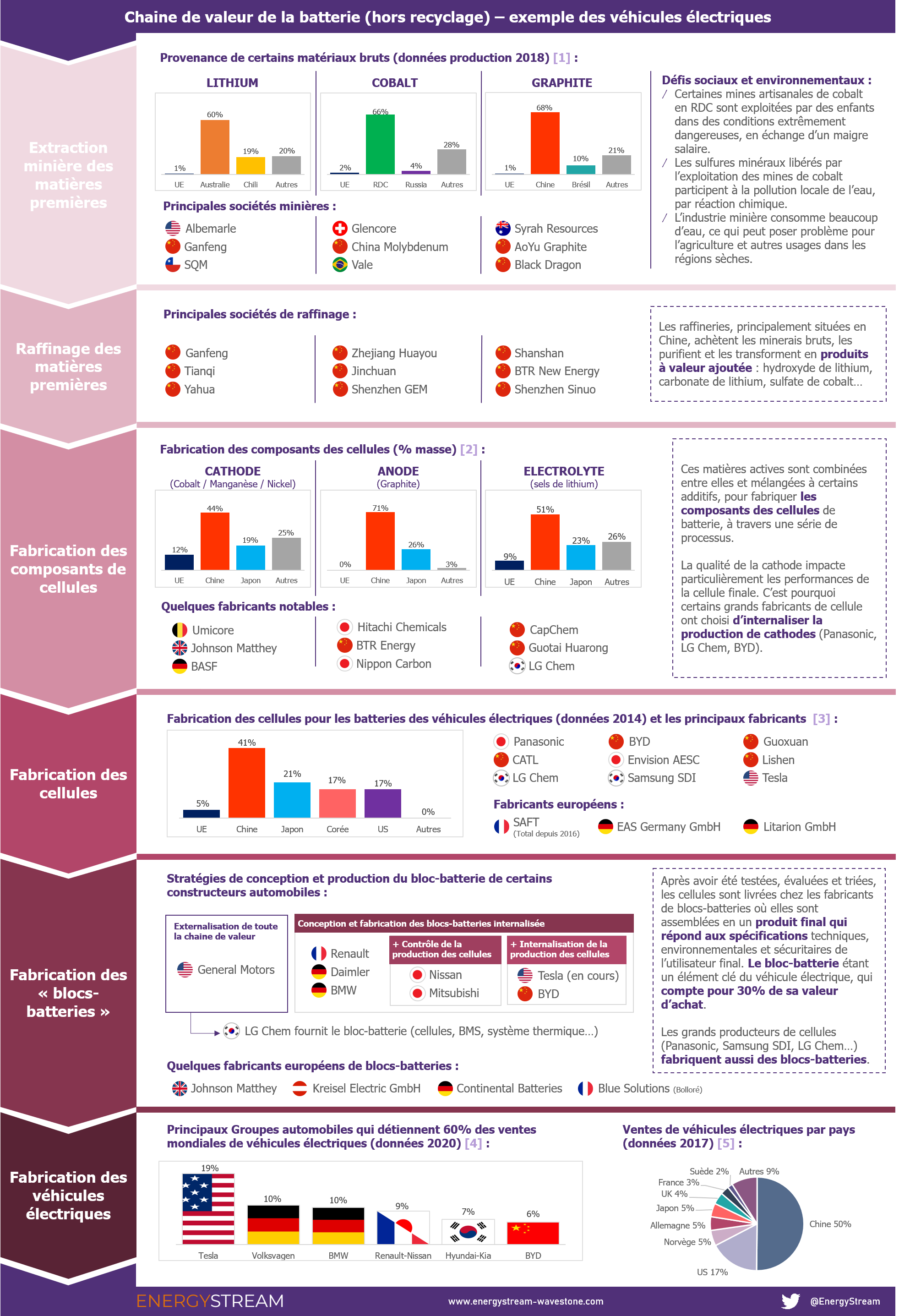 Dans le rapport de la commission au parlement européen d’avril 2019 – Mise en œuvre du plan d’action stratégique sur les batteries : créer une chaîne de valeur stratégique des batteries en Europe – la dépendance de la filière européenne de la batterie à des acteurs extra-européens est clairement identifiée.
