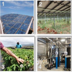 Par ailleurs, l’innovation prend une part importante dans ce processus. L’ « agrinergie » en est la parfaite illustration. Il s’agit d’une activité développée par l’entreprise Akuo Energy qui vise à associer la production d’énergie électrique et une activité agricole. [Photo 2 : Photovoltaïque-Production d’œufs issus de l’agriculture biologique et photo 3 : Photovoltaïque-Production de fruits de la passion issus de l’agriculture biologique] .